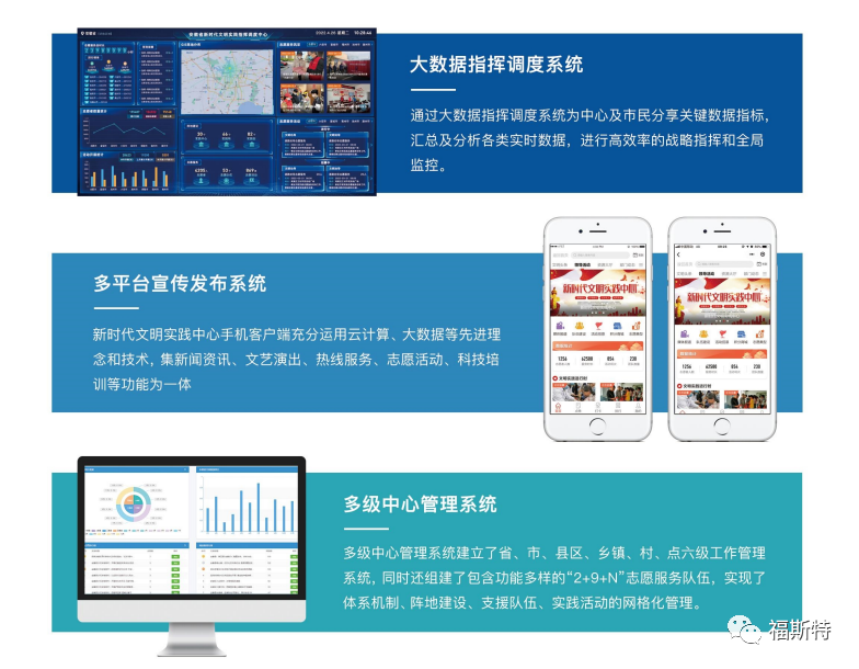 福斯特新時代文明實踐中心云平臺集服務(wù)、管理、發(fā)布、展示于一體,推動平臺、終端、和渠道互聯(lián)互通,為基層黨的理論宣講、文化建設(shè)和為民服務(wù)提質(zhì)增效,為志愿者、受益者與管理者提供了一個安全、快捷、便利、智慧化的新時代文明實踐管理工具